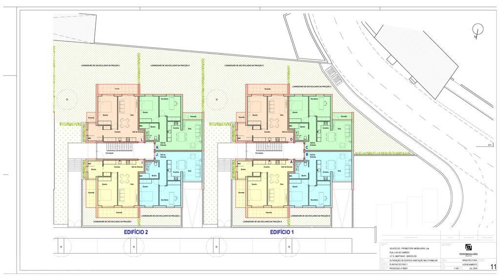 Fração autónoma B com 2 quartos, localizada no piso 1 de um edifício (Bloco 1) de três pisos (1 piso abaixo da cota de soleira e 2 pisos acima da cota de soleira) destinado a oito frações de habitação.
