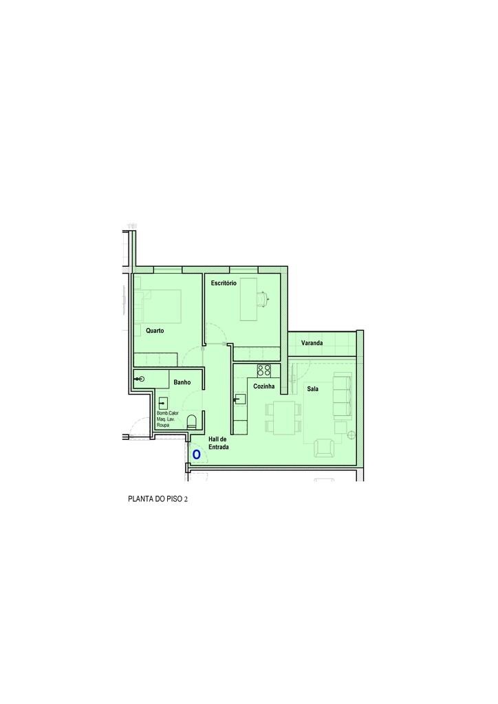 Segundo o projeto de arquitetura a fração O tem as fachadas orientadas a Sul e Oeste, e é composta por um espaço amplo destinado a hall de entrada, cozinha e sala, um quarto, um escritório, uma instalação sanitária e varanda